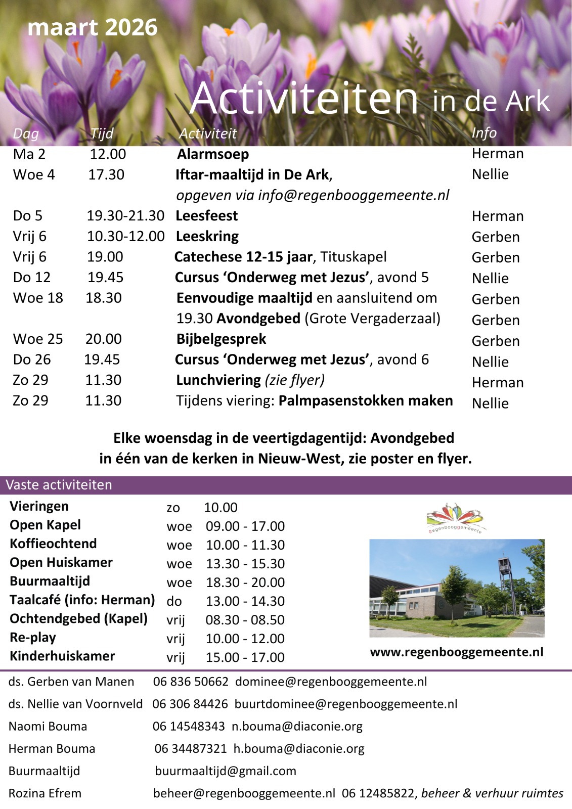 Blijf op de hoogte van activiteiten in De Ark / Regenbooggemeente door u in te schrijven op onze flyers!